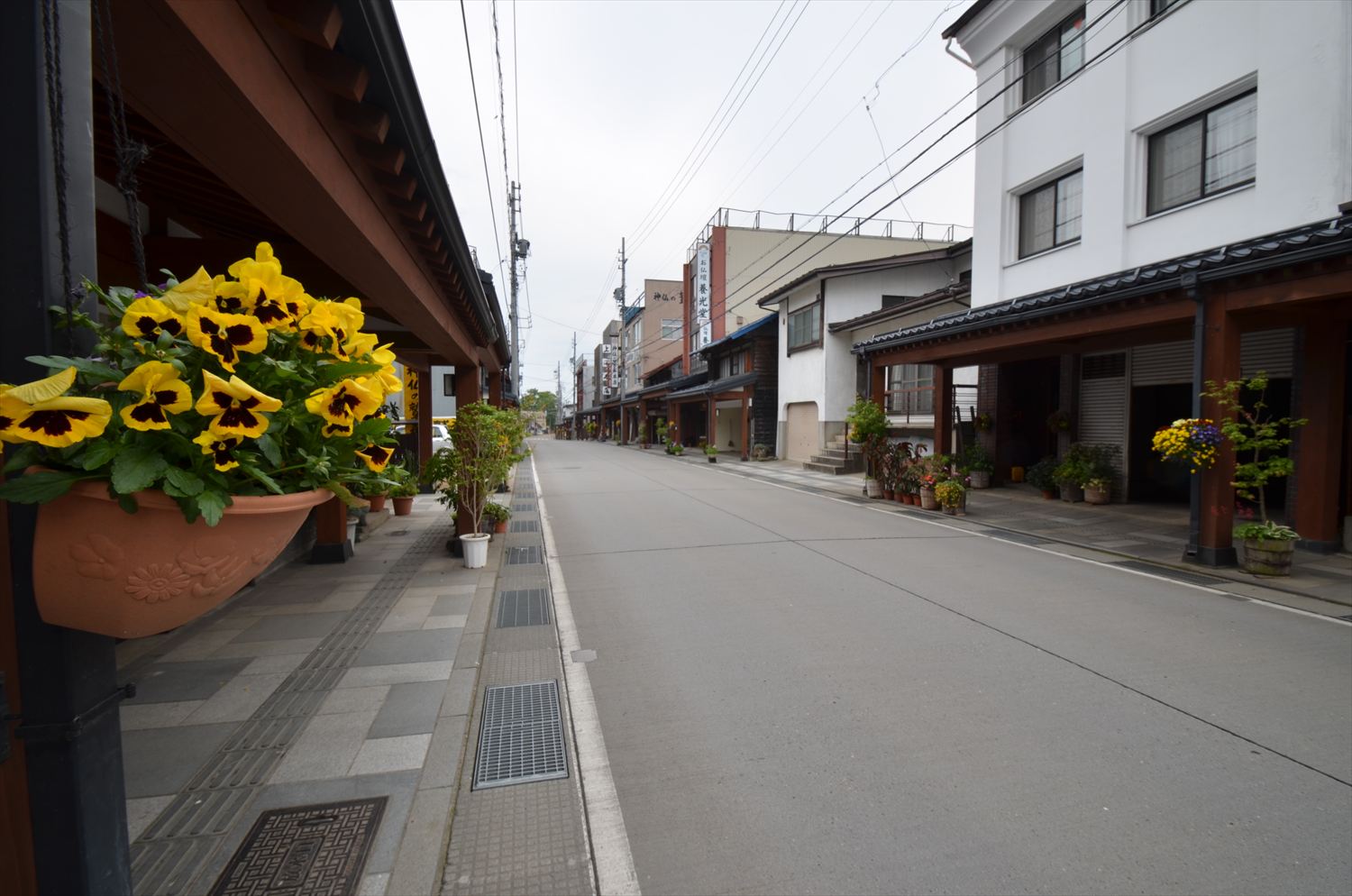 「雁木(がんぎ)」とは雪よけの屋根のことで、冬を快適に過ごすための雪国ならではの知恵。約300mにわたって雁木が再現された通りには、全国的にも珍しく仏壇店が軒を連ねていることから、別名「仏壇通り」とも呼ばれています。