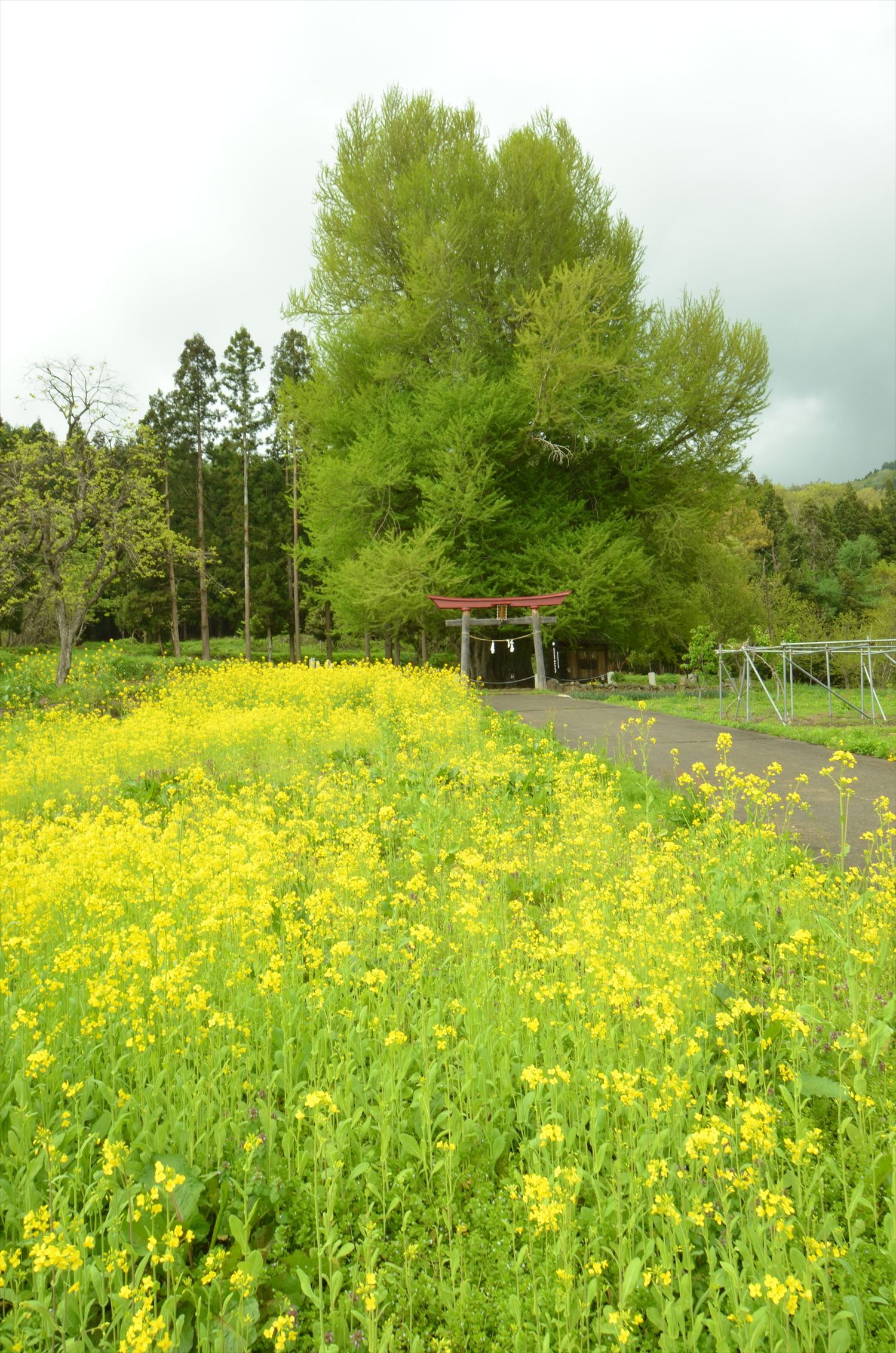 樹齢500年超と伝えられる高さ36mの大イチョウ。新緑の頃と金色に染まる秋の美しさは格別。気根が乳房のように垂れ下がる姿から、母親が乳の出を祈願する風習があります。