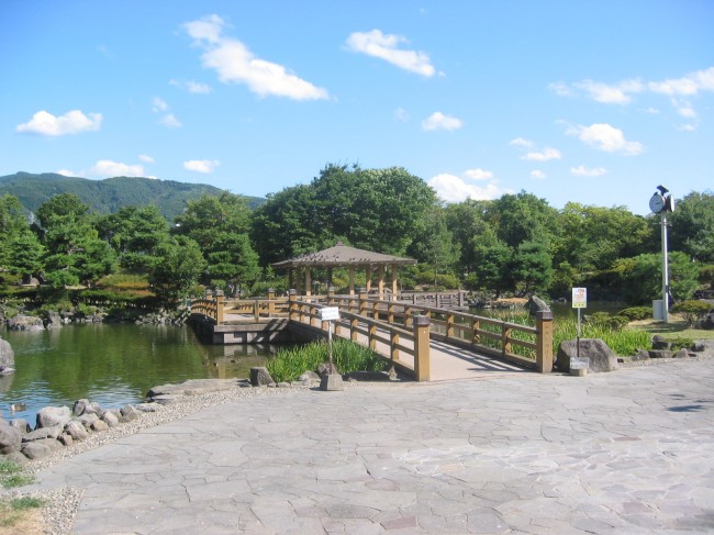 あがたの森公園は、芝生と池、一角には遊具が設置された、広さおよそ61,000平方メートルの公園です。