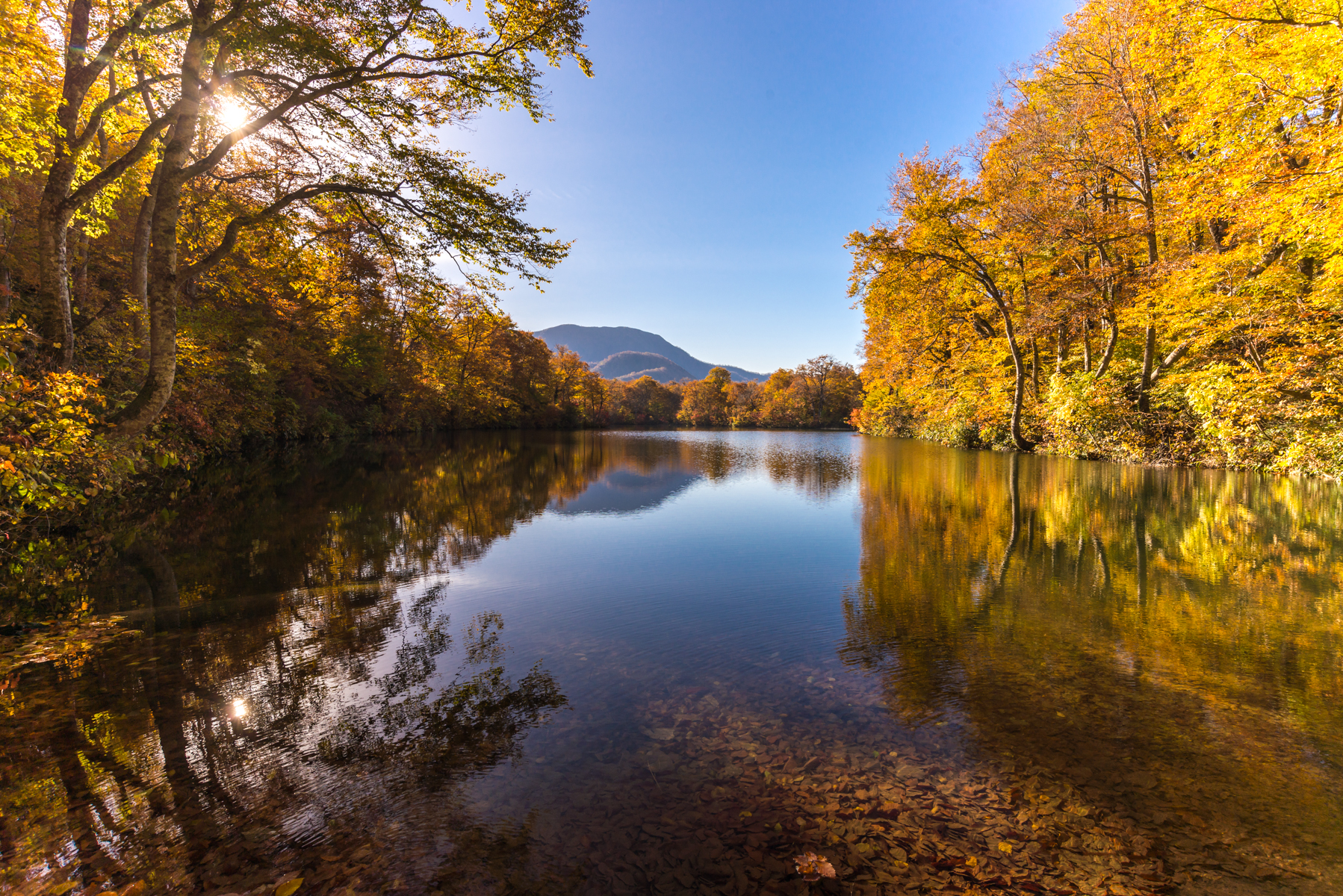 樹齢200年を越えるブナ林に囲まれ5月中旬には芽吹き、10月中旬には紅葉が楽しめる絶景スポット。