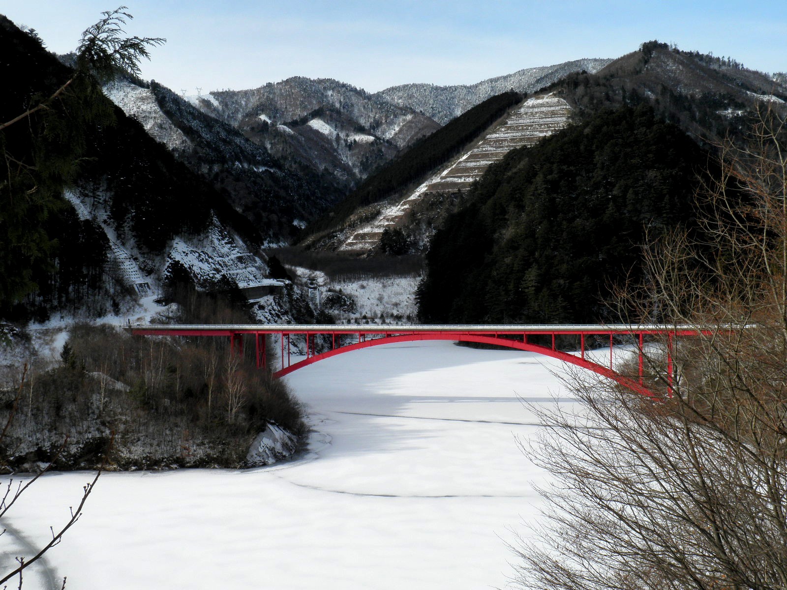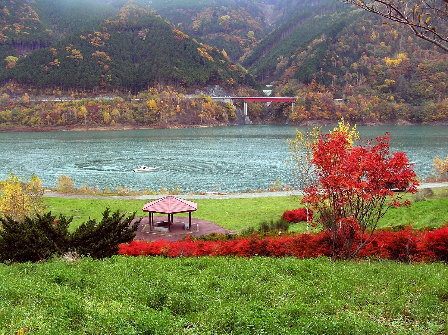 木曽川最上流域に位置する味噌川ダム(奥木曽湖)は、天端標高1,130mで多目的ダムとしては日本で二番目に高い位置にあります。構造はロックフィルダムで総貯水量は6,100万立方メートル。水のきれいさは全国有数であり、「ダム湖百選」に選出されています。最近ではカヌーなどの湖面利用も盛んであり、自然を満喫したい観光客が多く訪れています。