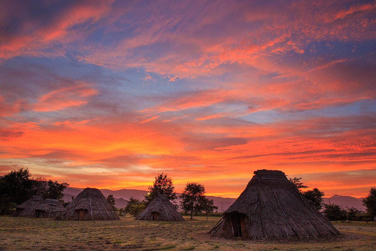 日本三大遺跡に数えられる大きな遺跡。縄文時代から平安時代の長期間にわたる集落跡が見られる複合遺跡です。土器・石器など約2万点の出土品は隣接の平出博物館に展示されています。また日本一大きなめずらしい奈良時代中期の瓦塔も展示されています。
