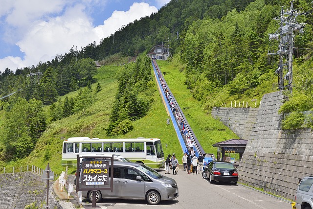 グリーンシーズンは横手山スカイレーターとスカイペアリフトを利用すれば、左右にニッコウキスゲ・ヤナギラン・オオシラビソを眺めながら楽々と2,307mの横手山山頂へ。