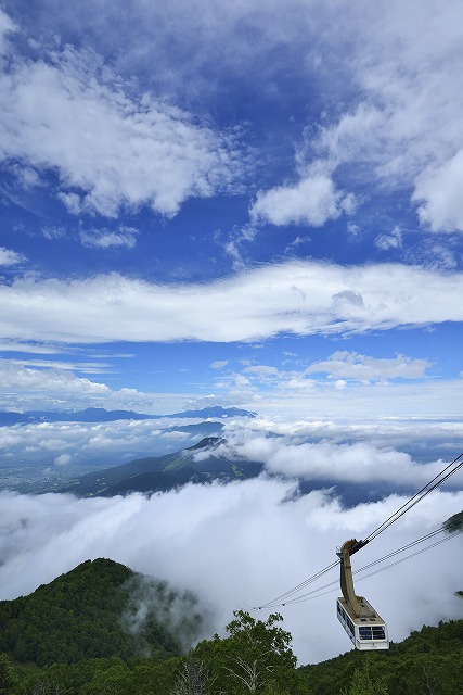 竜王山頂までは世界最大級の166人乗りロープウェイで約8分の空中散歩が楽しめます。山頂にはソラテラスカフェや山野草ガーデンがあり、ヒマラヤの青いケシを見ることができます。