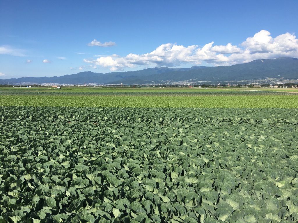 塩尻は高原レタスの一大産地。朝晩の寒暖差や日照時間の長さなど塩尻はレタスの好適地です。特に甘みを含みパリパリとした食感の高原レタスは、収穫量でも県内3位。市を代表する野菜です。春から夏にかけては、一面に広がるレタス畑が田舎を感じさせる美しい風景の一部となっております。