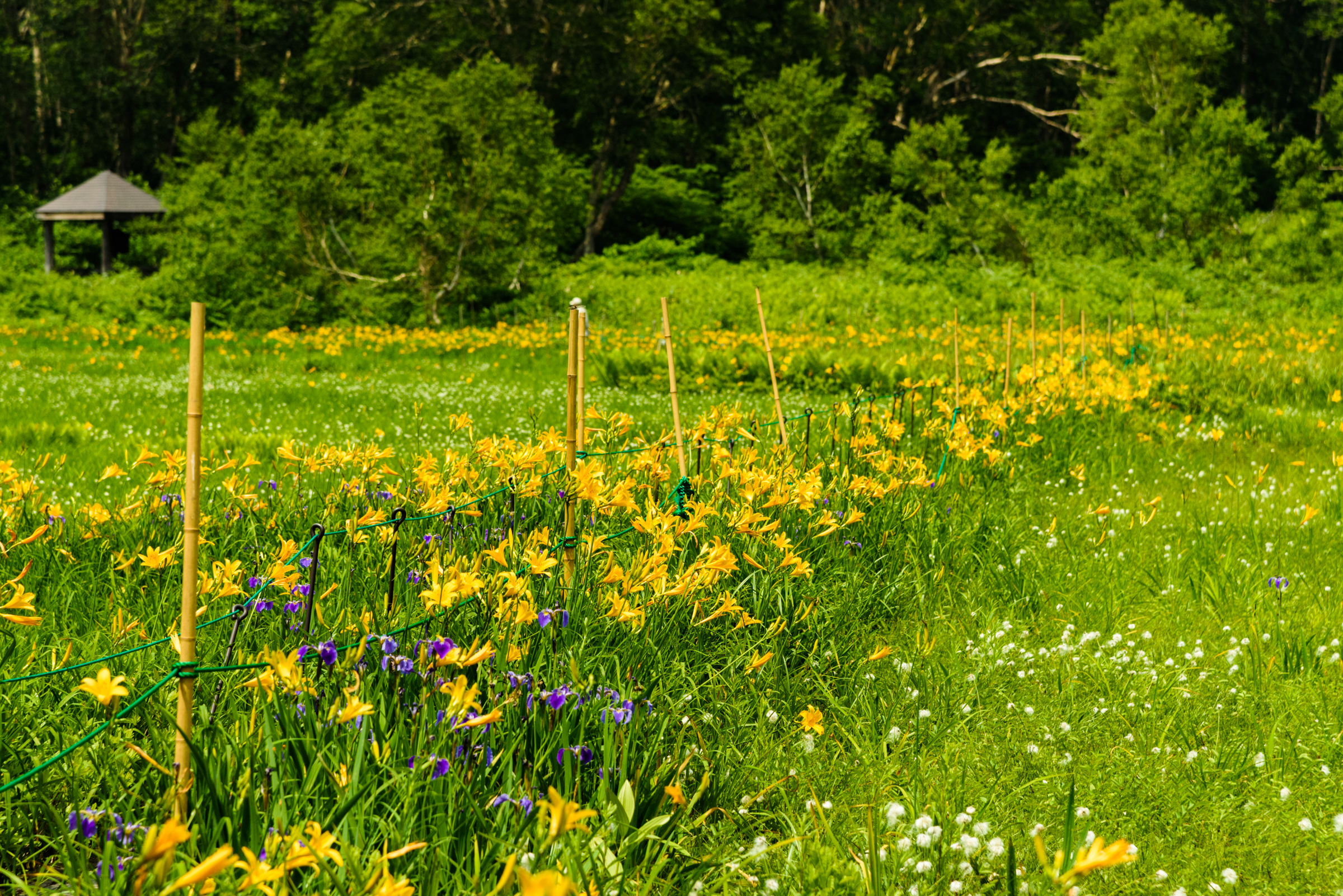 上信越高原国立公園の中心地。木島平村の東南に位置し、標高1,500m付近に広がる高原です。ここには、樹齢300年を超えるブナの原生林があり、「日本一美しい森」言われる、見事なブナの原生林が広がっています。また、北ドブ、南ドブと呼ばれる湿原もあり、貴重な植物の宝庫でもあります。6月初旬から、11月初旬まで行くことができます。冬期間は閉鎖しています。施設は総合案内所、ロッジ、キャンプ場があります。総合案内所を中心に、ブナの原始林、湿原、標高1,747.3mの高標山などを結ぶ、トレッキングコースが複数あります。