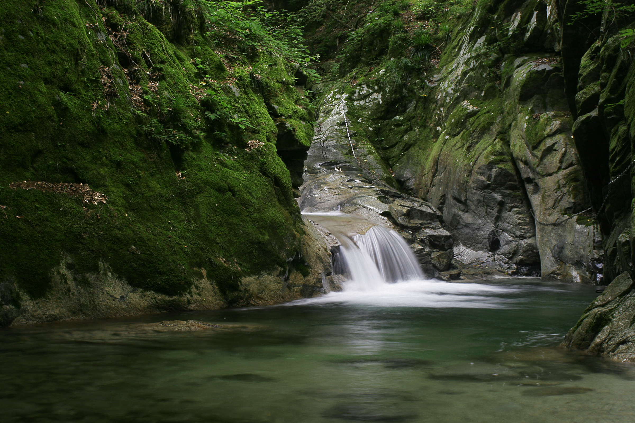その上流域の渓谷は、エメラルドグリーンの清流を見ることができます。
