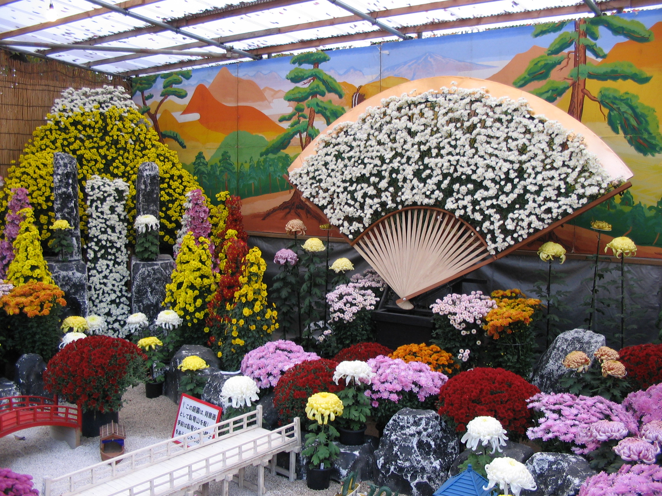 毎年10月後半から11月半ばにかけて臥竜公園内で開催され、三本立てや懸崖作りなど、500鉢余りの見事な菊が会場を彩ります。圧倒的な菊庭園や、ユニークな造形菊も必見です。