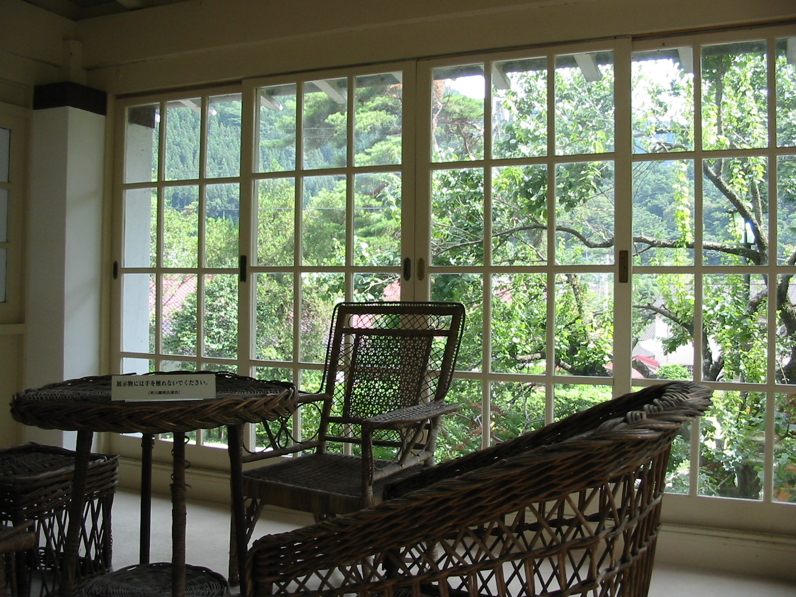 建物は明治から昭和初期にかけて御料局名古屋市庁妻籠出張所庁舎として使用されていたものをこちらに移築復元しました。桃介記念館とはまた趣の違うレトロな建物です。