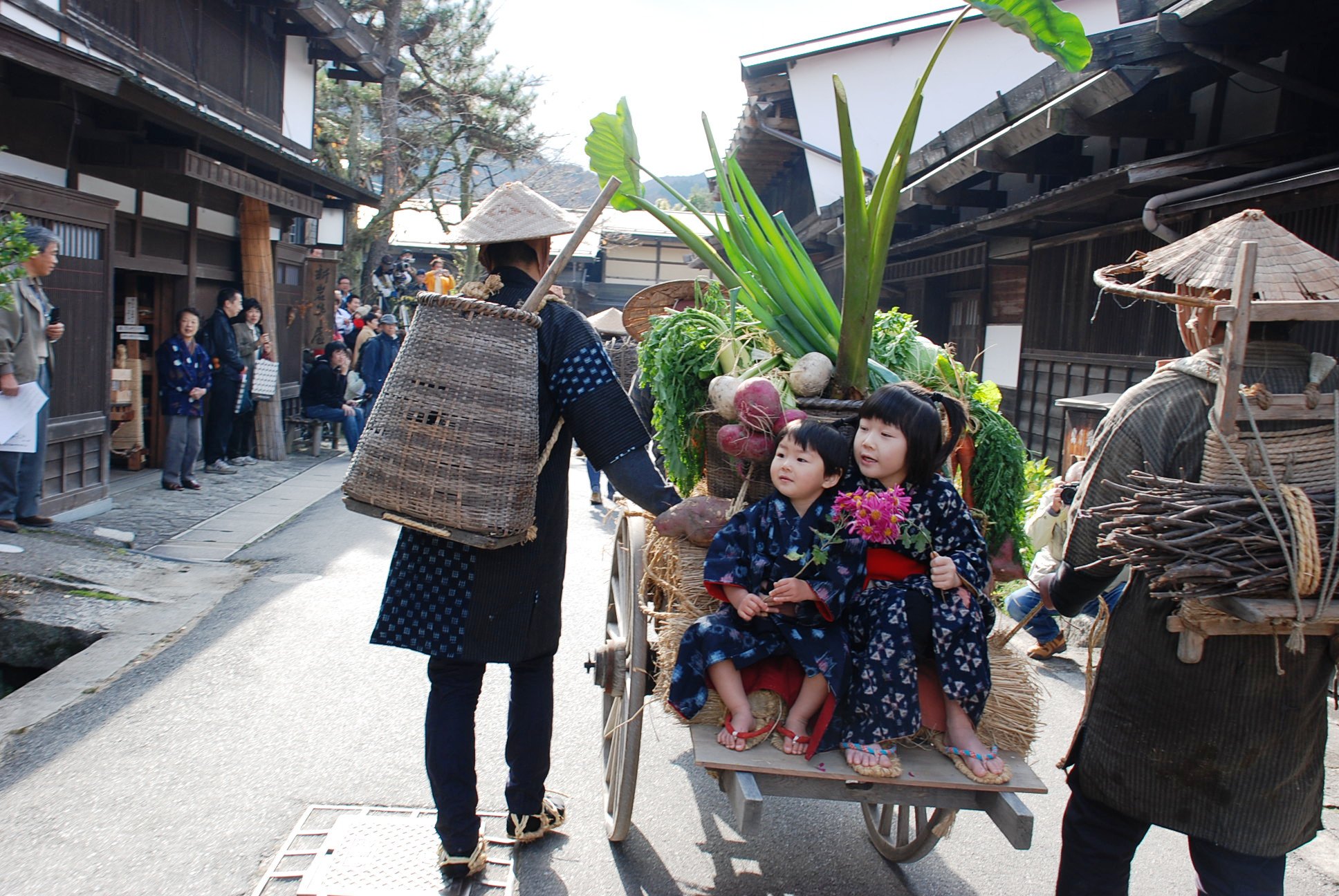 花嫁行列、武士、駕籠かき、虚無僧、鳥追い女、行商人、村人、旅人など様々な衣装を身にまとった人々が宿場を往来し、江戸時代の賑わいを再現します。