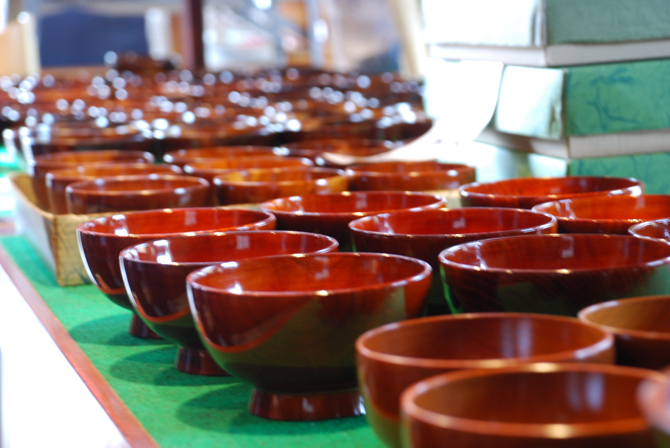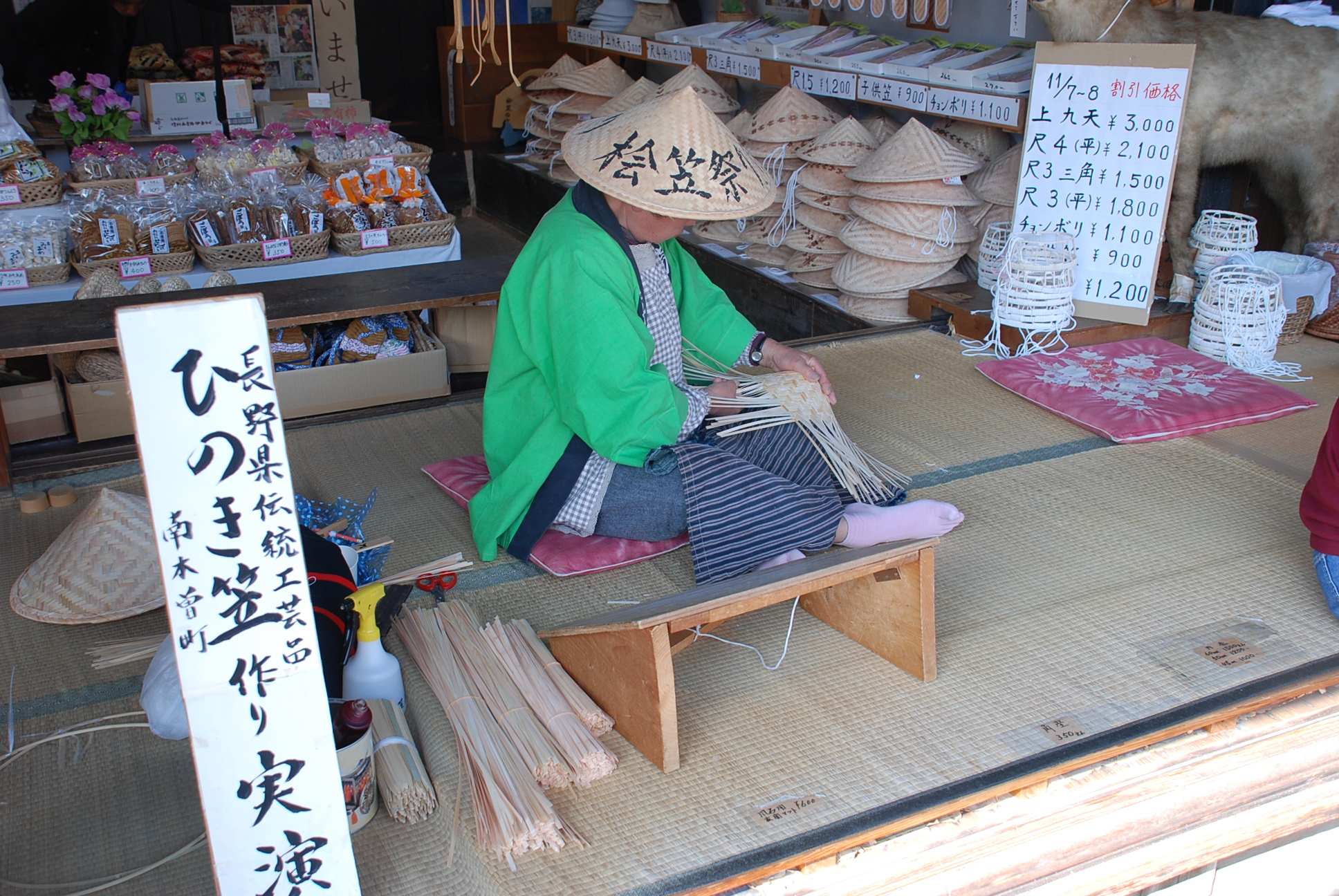 南木曽町の伝統工芸品であるろくろ細工製品と木曽桧笠、また桶や木工品等の実演と販売を行います。笠の家と木地師の里の2会場で行われます。