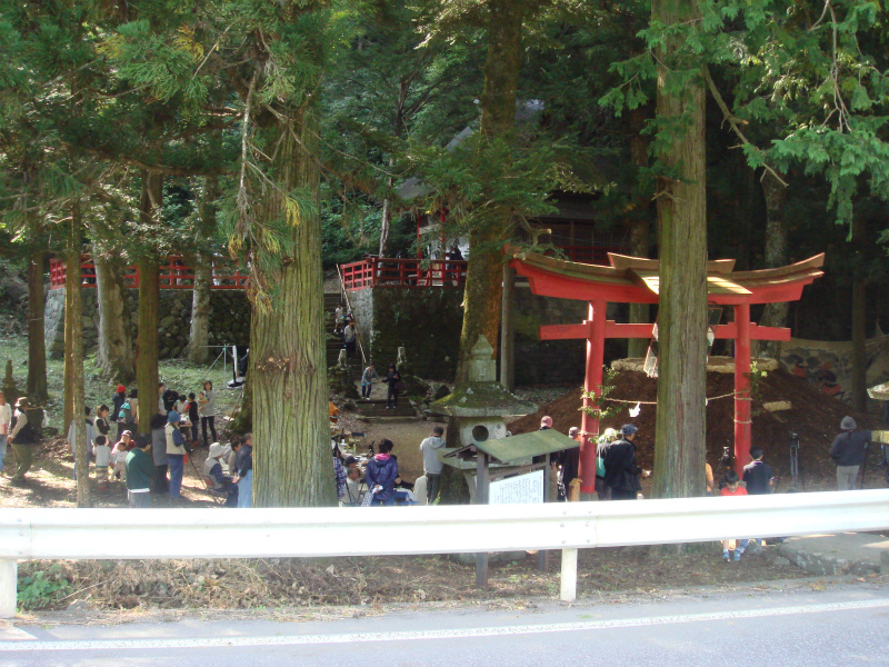 国道152号線沿いにある稲荷神社で、大きな杉の木々に隠れるようにして建っているこの神社の境内には「高辻土俵」と呼ばれる高さ4mほどの小山のような土俵があります。江戸時代の名大関雷電もここで稽古ををしていたともいわれ、毎年10月には奉納相撲が行なわれています。