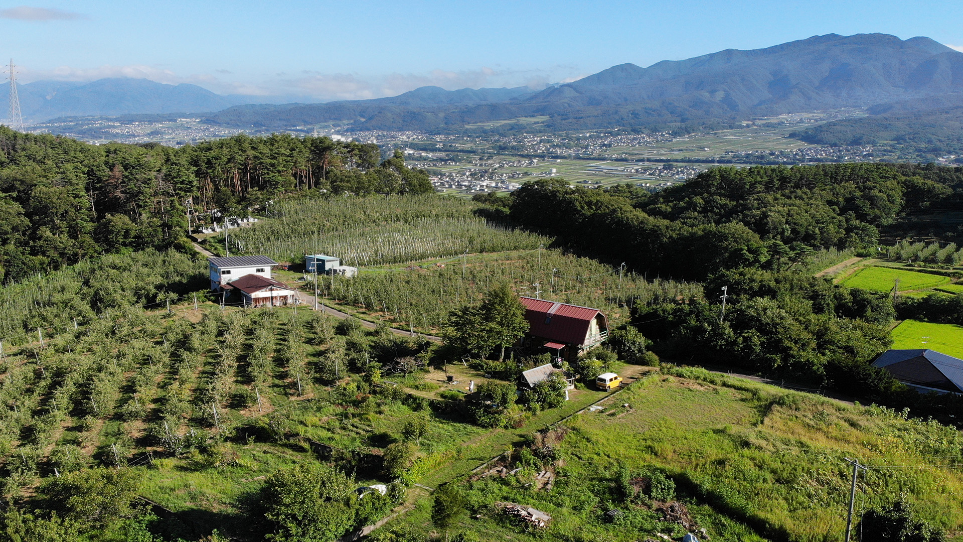 りんご畑に囲まれた丘の上の1軒家。360度開けた大パノラマが魅力です。